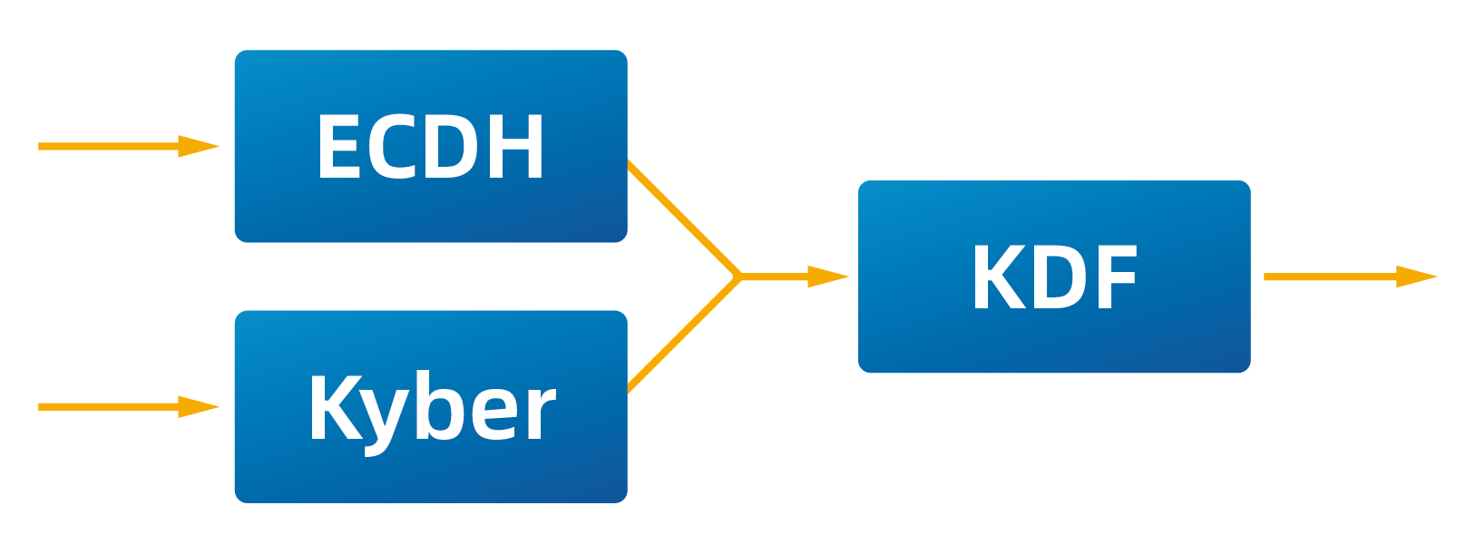? 混合密钥交换:同时执行传统密钥交换协议(如ECDH)和后量子密钥封装机制(如Kyber);