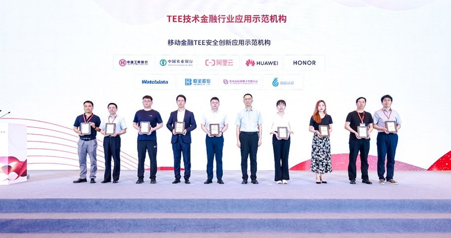握奇公司與中國工商銀行、中國農業銀行、阿裏雲、華爲、榮耀等公司一起領取了TEE技術金融行業應用示範機構證書