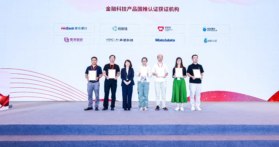 握奇公司與微衆銀行、螞蟻鏈、華控清交、螞蟻集團等公司一起領取了金融科技産品國推認證獲證機構證書
